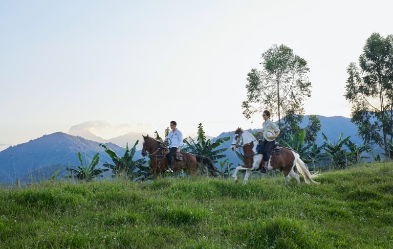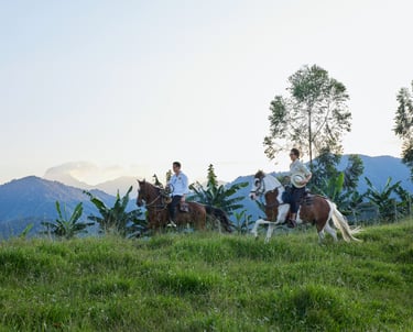 Senderismo Ecuestre: Explore con total seguridad nuestra vasta reserva cafetera de 300 hectáreas a caballo. Duración aproximada: 1 hora y media a 2 horas.